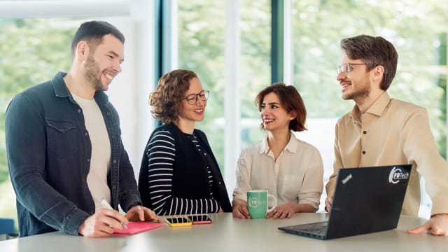 Our employees come from 17 nations and bring not only concentrated expertise and individual knowledge, but also a lot of curiosity and diversity to the team. We live an inclusive culture of open doors, with flat hierarchies and authentic, trusting interaction - creating an environment for intrinsic motivation, where potential can unfold and innovative ideas can emerge.
